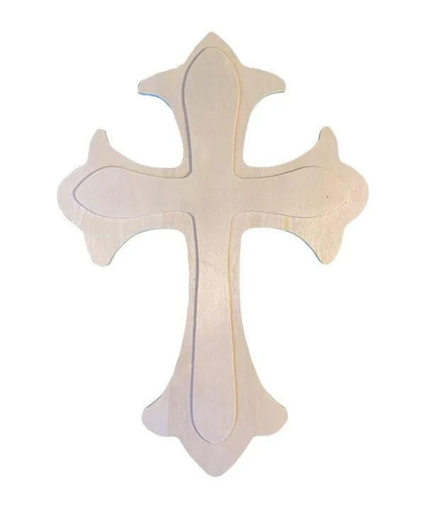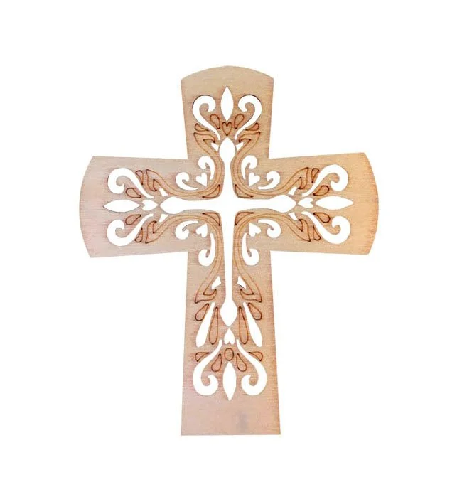 Description: Intricate die cut wood cross